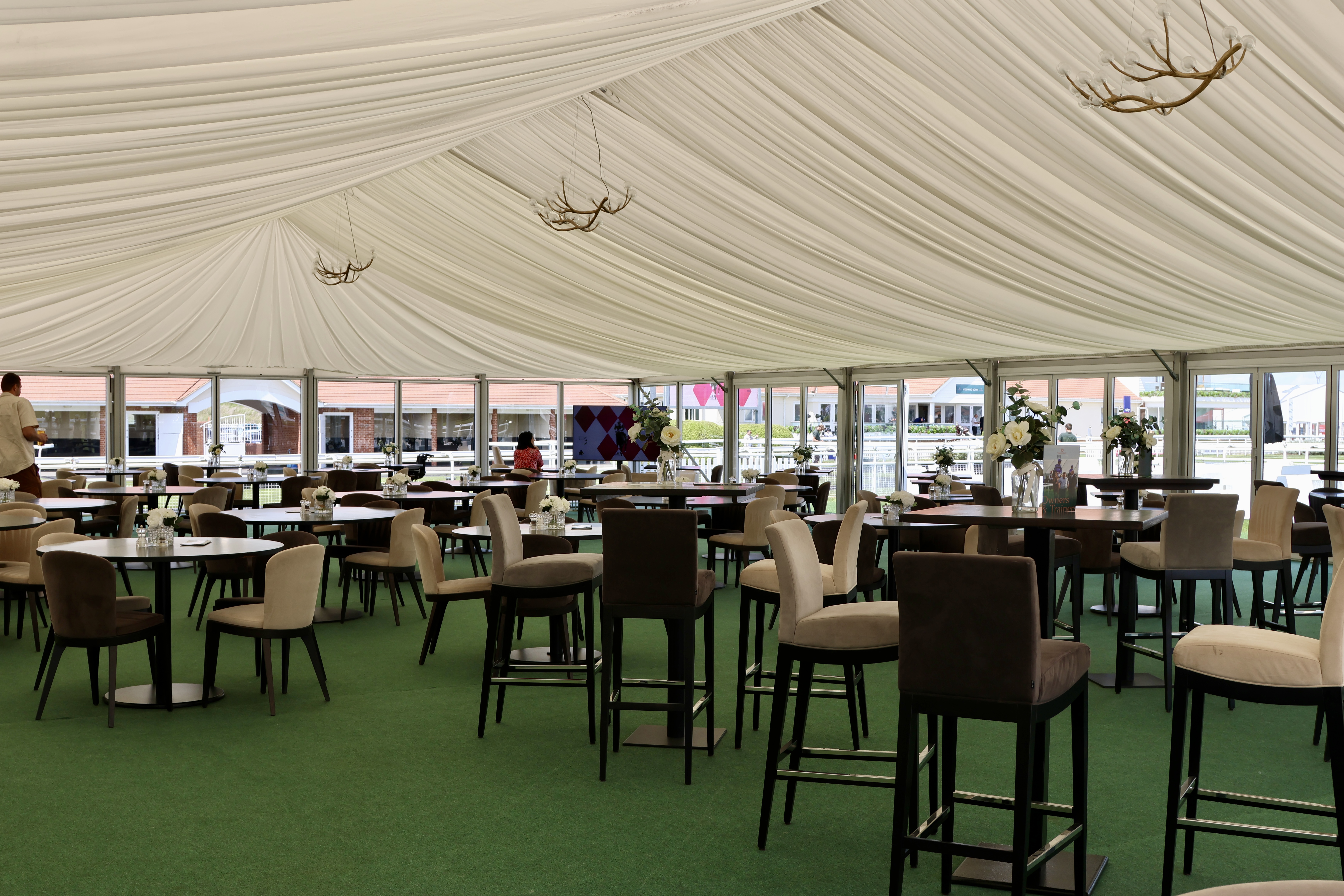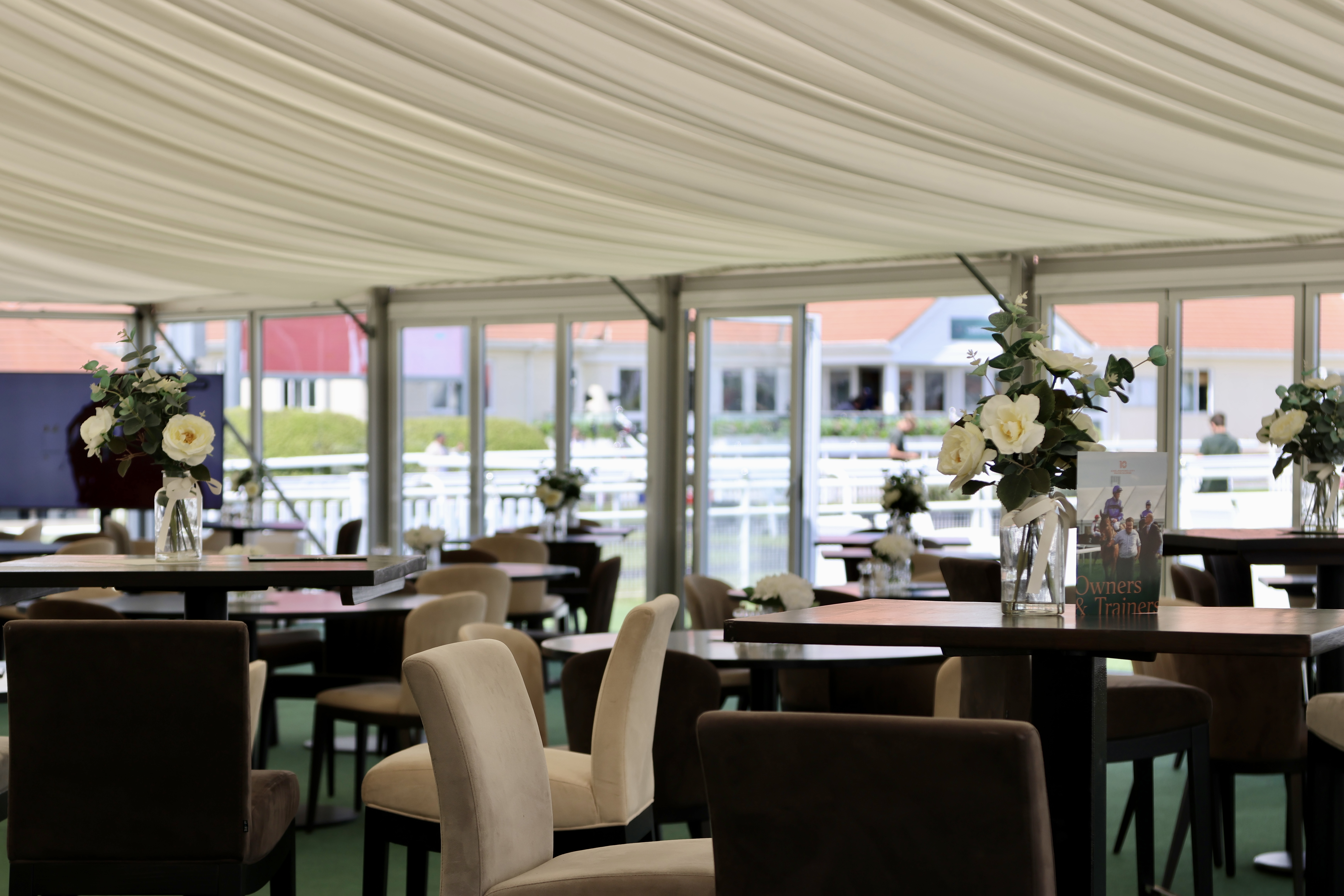 Situated across from the parade ring, our brand NEW Owners and Trainers facilities overlooks the parade ring and horse walk, complete with a garden terrace. A complimentary welcome drink is offered on arrival as well as a seasonal buffet along with a range of fresh sandwiches. The marquee also holds a private bar serving alcoholic and non-alcoholic drinks.